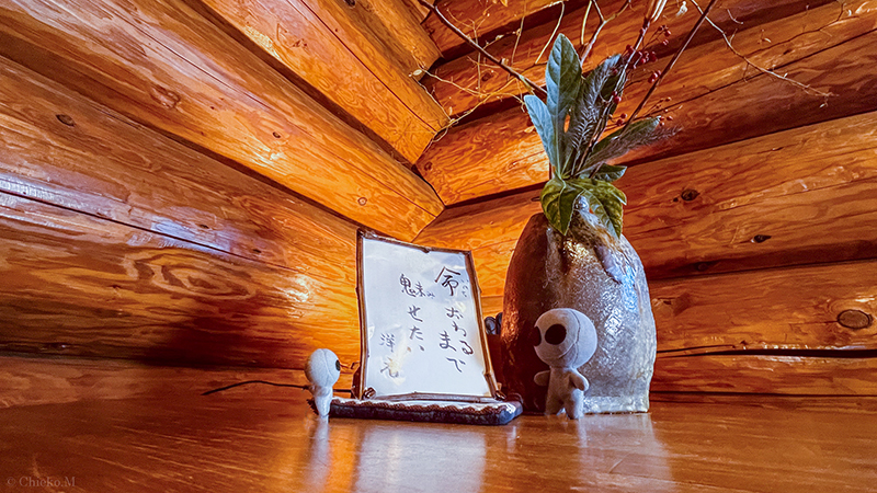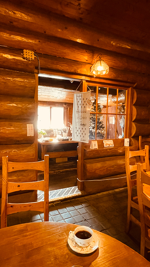 店内はしっかり組まれた木が、その落ち着いた色と質感で安らげる空間を作りあげていました。